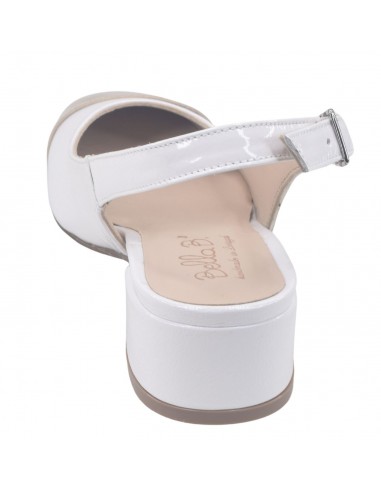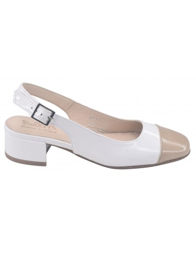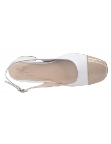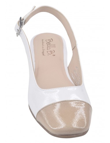 Zapatos de tacón con espalda abierta, charol blanco topo, Lucy, Bella B