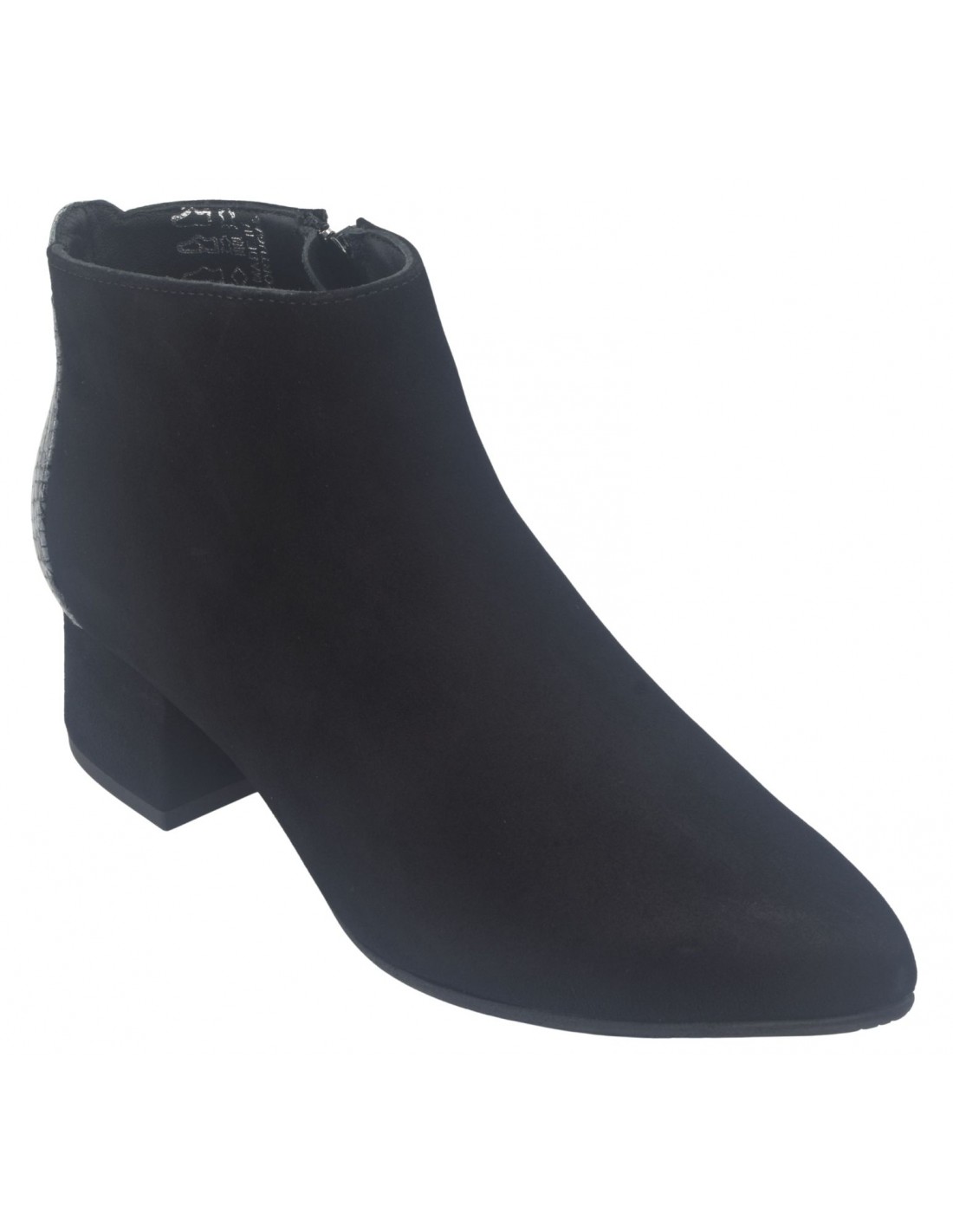 Botas, punta puntiaguda, bimaterial, altura 4 cm.