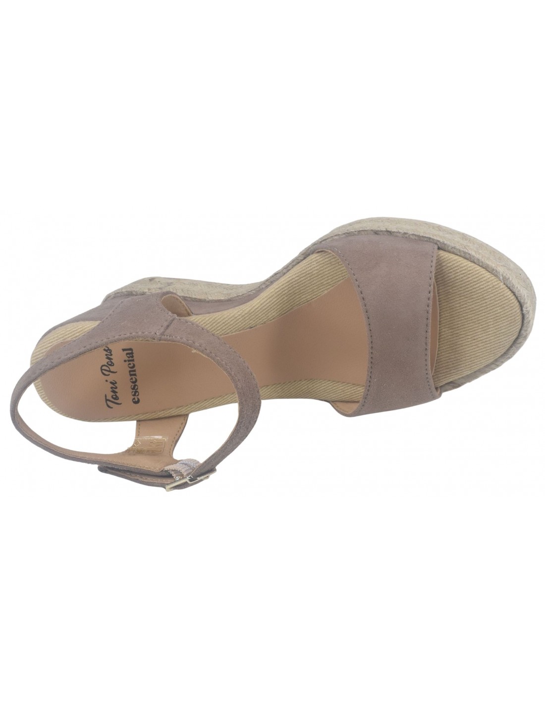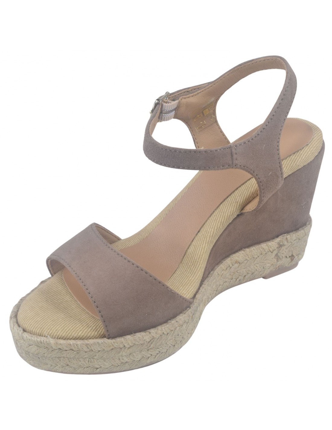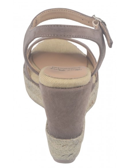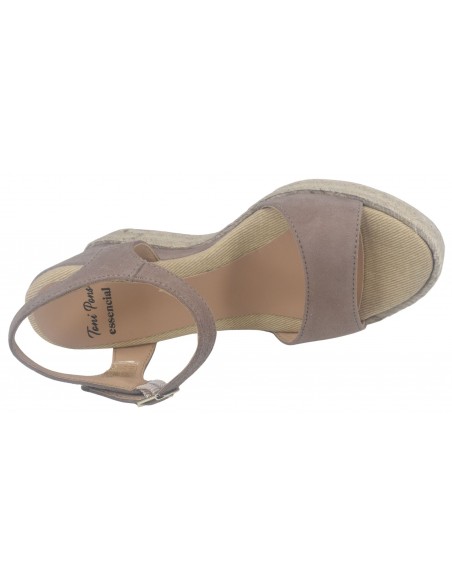 Sandalias de cuña, piel serraje color topo, Agnes-A, Toni Pons