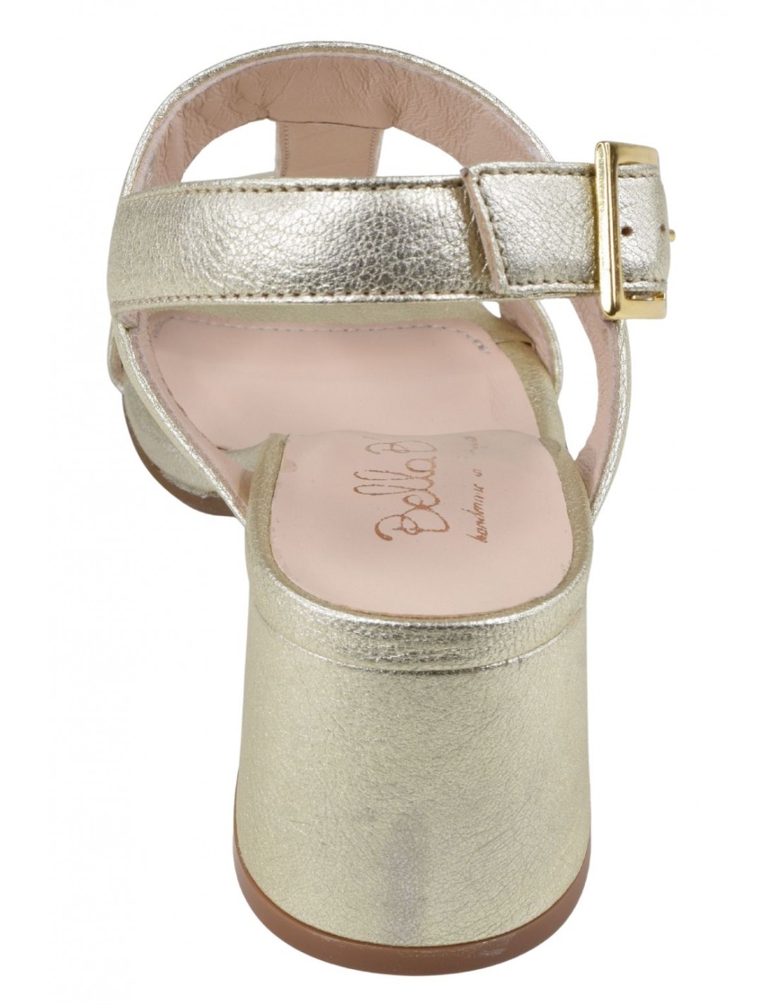 Elegantes y luminosas sandalias para mujer en piel metalizada dorada, con un tacón cuadrado estable de 5,5 cm. Un estilo refinado y cómodo, especialmente diseñado para tallas pequeñas 33 y 34.