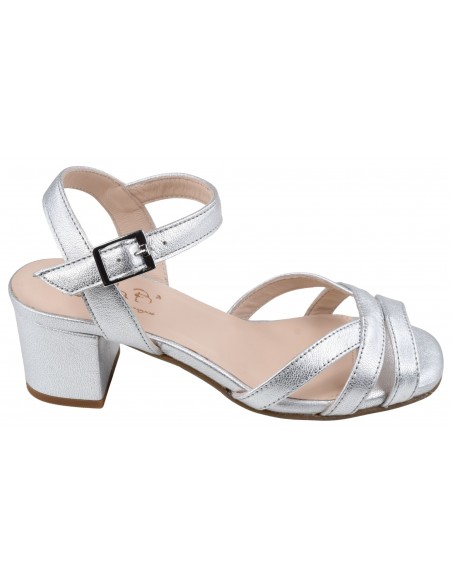 Sandalias de piel plateada con un diseño femenino y luminoso, con un cómodo tacón de 5,5 cm. El modelo Asterias de Bella B (Portugal) es ideal para tallas pequeñas (33 y 34).