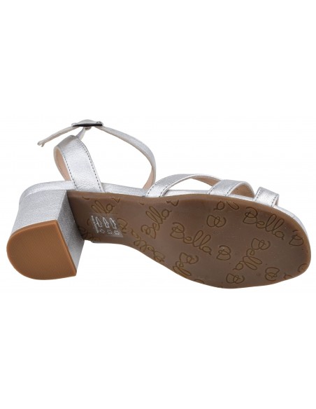 Sandalias de piel plateada, tacón 5,5 cm, Asterias, Bella B