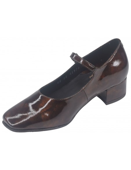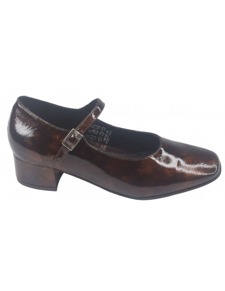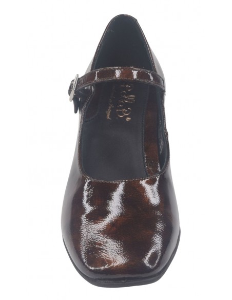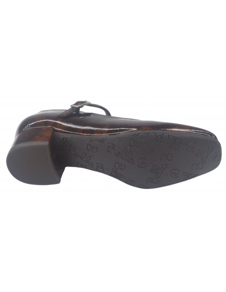 Les escarpins brides à bouts ronds Luana de la marque Bella vont ravir les femmes qui sont actives et restent de longues heures debout. (hôtesse, service en salle ...). ce modèle à bout rond est monté sur un talon carré épais enrobé de cuir verni marron d'une hauteur de 3.5 cm. Sa semelle intérieure est doublée en cuir. On aime tout particulièrement un ressenti matelassé de la semelle intérieur lui donnant un grand confort. Sa semelle extérieur est faite avec une gomme antidérapante d'une excellente qualité. La largeur de son chaussant est de 7.5 cm. (Largeur standard).