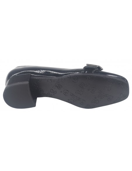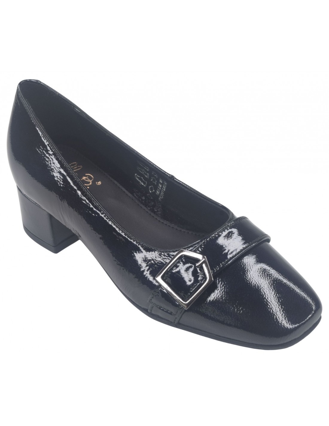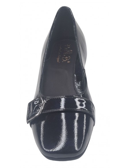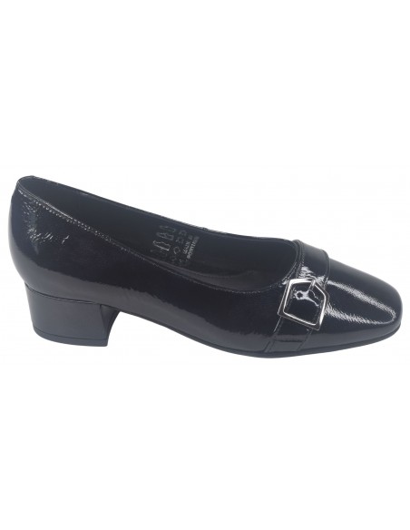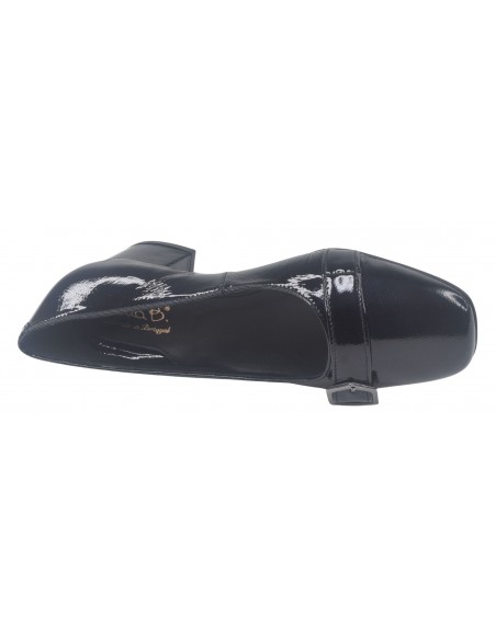 Les mocassins à bouts ronds Luton de la marque Bella vont ravir les femmes qui sont actives et restent de longues heures debout. (hôtesse, service en salle ...). ce modèle à bout rond est monté sur un talon carré épais enrobé de cuir verni noir avec des reflets marines selon la lumière du jour d'une hauteur de 3.5 cm. Sa semelle intérieure est doublée en cuir. On aime tout particulièrement un ressenti matelassé de la semelle intérieur lui donnant un grand confort. Sa semelle extérieur est faite avec une gomme antidérapante d'une excellente qualité. La largeur de son chaussant est de 7.5 cm. (Largeur standard).
