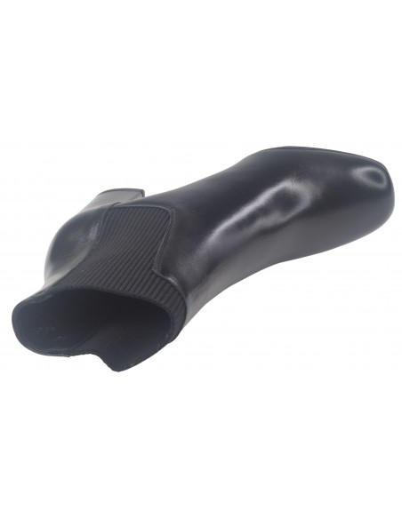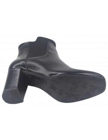 The Blondy ankle boots by Bella B feature a 7cm leather-covered square heel. The upper is made of smooth black leather with a height of 10.5cm. They slip on like a sock thanks to the elastics on both sides of the upper. The ankle circumference is 24cm (measured at the top of the upper on a size 34).