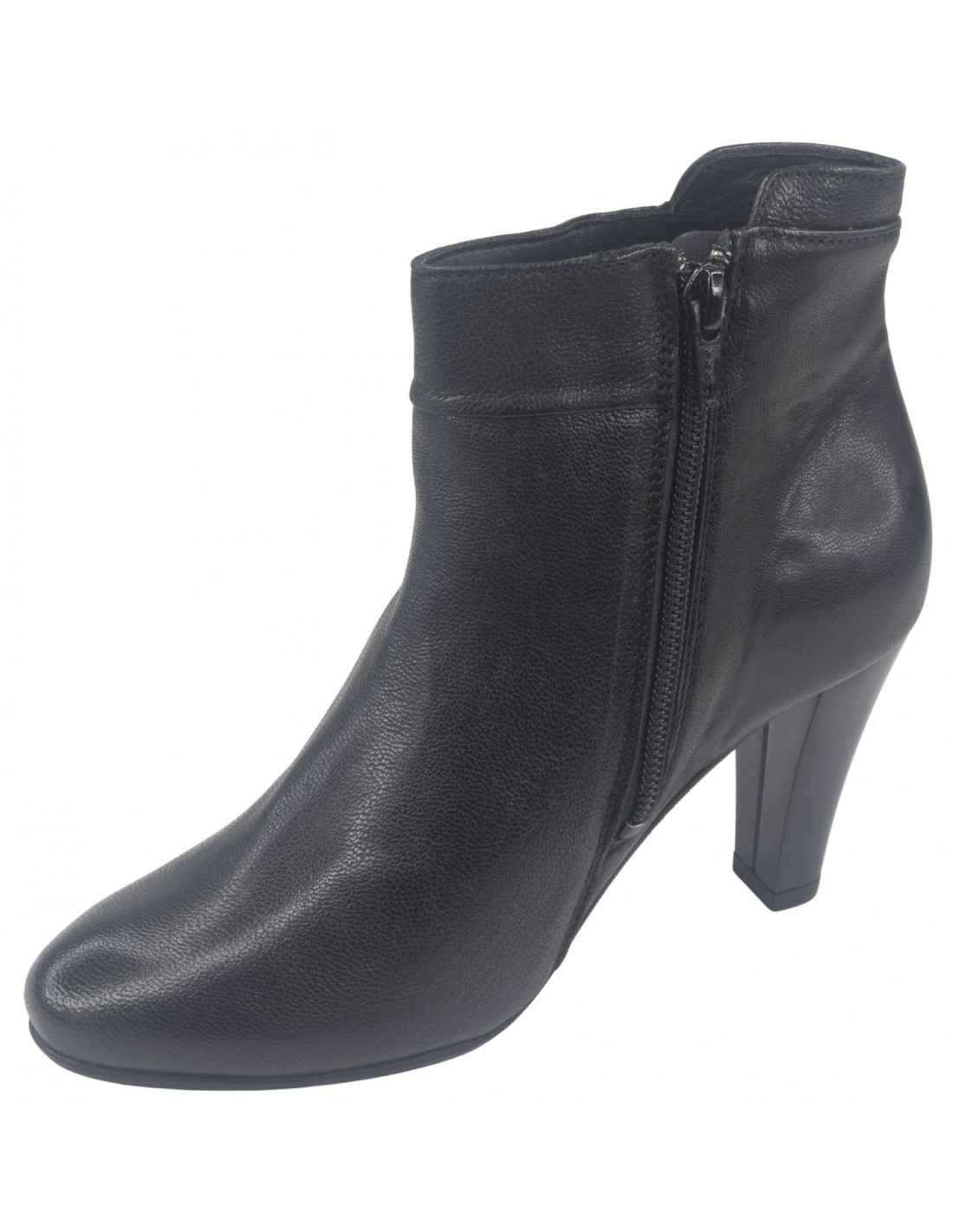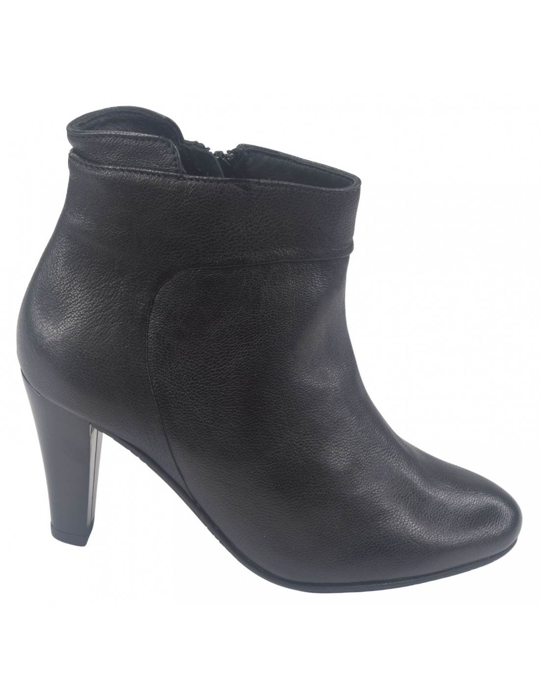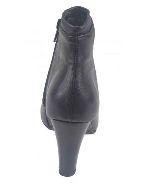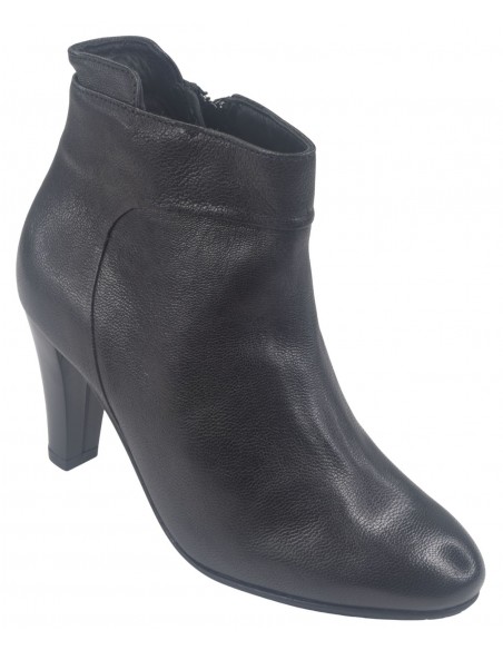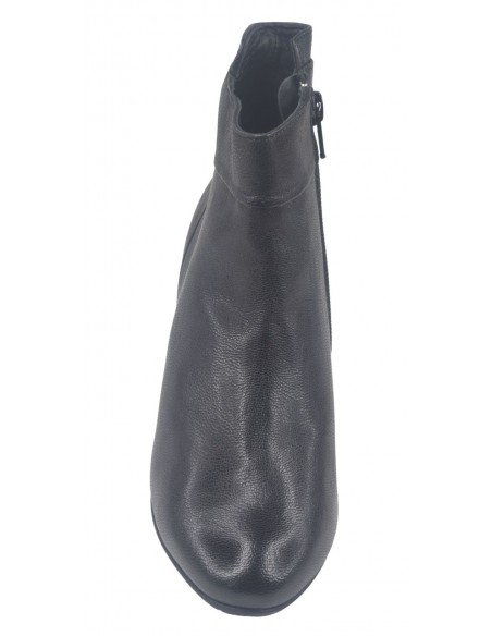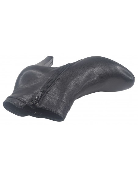 The Vat ankle boots, designed by Bella B, feature a natural black heel with a height of 8 cm. The upper is made of supple, smooth black leather. They are easy to put on thanks to the interior zip fastening. The shaft height is 10 cm and the ankle circumference (measured at the top of the shaft on a size 34) is 25 cm. The width of the shoe is 7.5 cm.