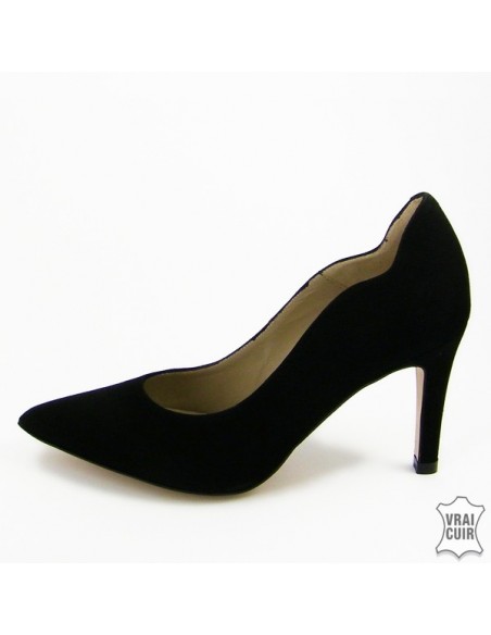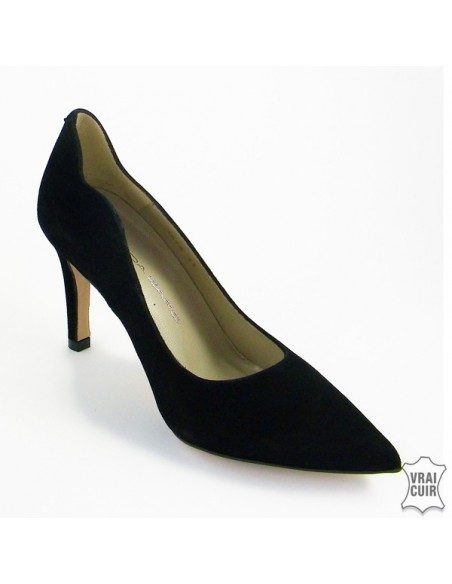 Des escarpins en nubuck noir à talons pour petits pieds à partir de la pointure 32.