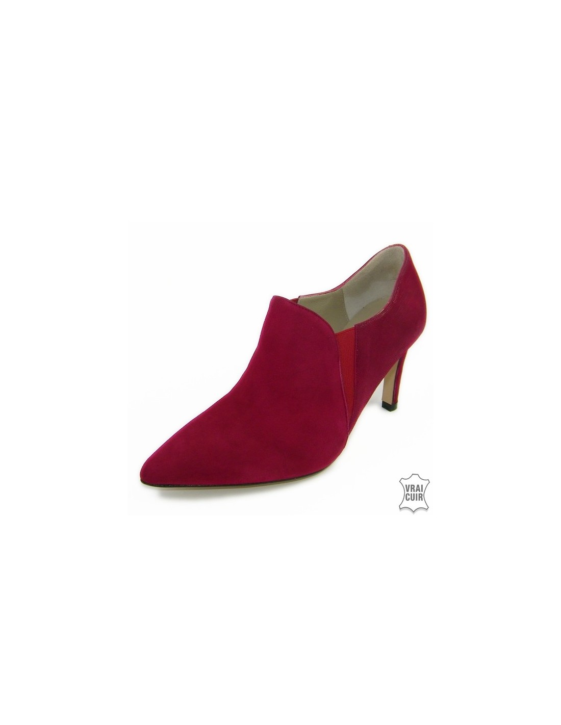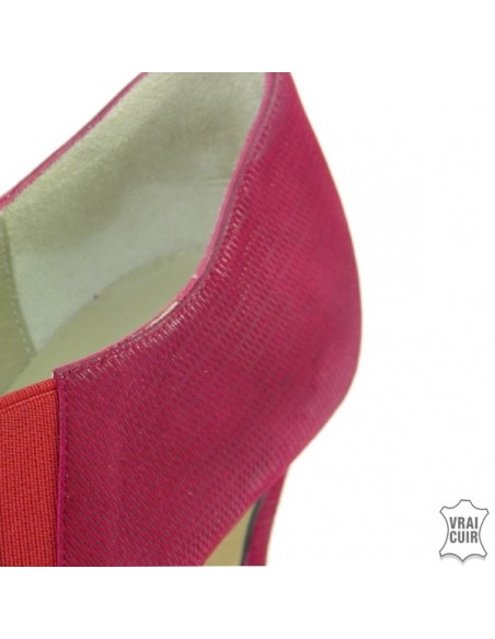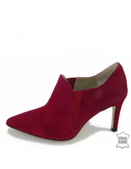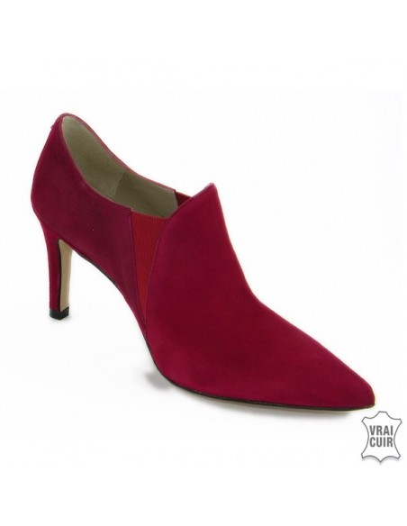 Sono in nabuk rosso bordeaux sul davanti poi un elastico rosso separa il retro che ha uno speciale effetto lucido.