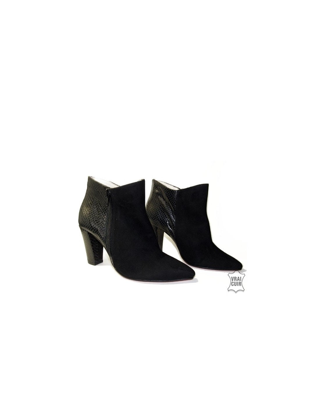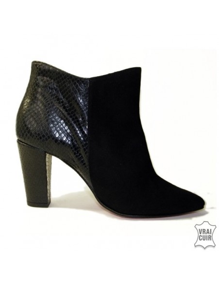Sono in nabuk nero sul davanti e effetto rettile nero sul retro. Hanno una cerniera all'interno del piede per una facile calzata.