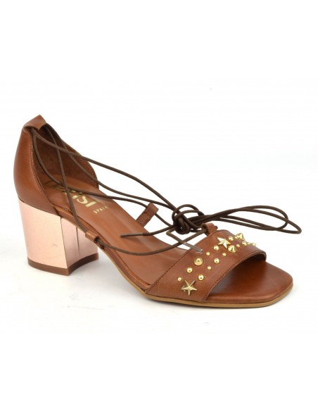 Heel height: 5.5 cm - wrapped in gold mirror effect leather.