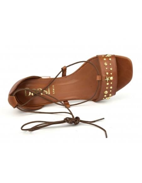 Material: smooth brown leather decorated with small stars and golden pearls.