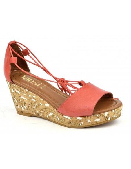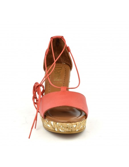 Coral smooth leather wedge sandals, 8330, Dansi, women small sizes