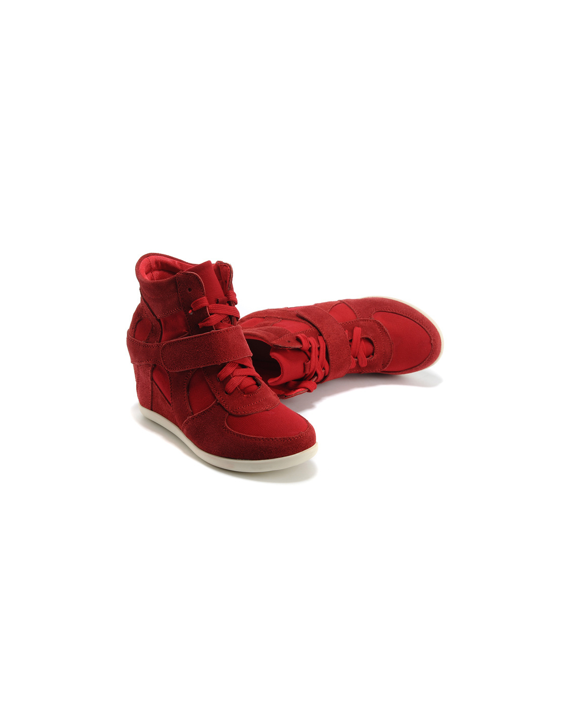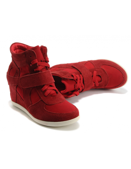 Deportivas con tacones de cuña a partir de la talla 34 en color rojo con velcro. Este modelo puede ser adecuado para una talla 33 con suela gruesa o calcetín.