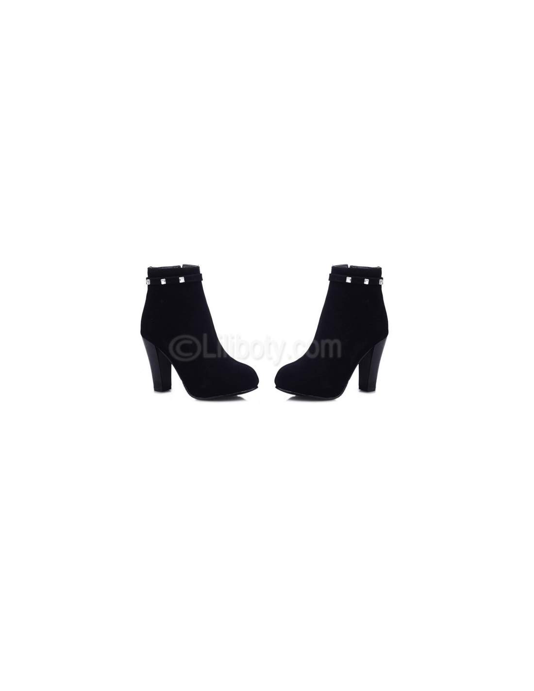 Botines negros de tacón en talla pequeña para mujer con cierre de cremallera y pedrería alrededor del tobillo. Botas muy cómodas y muy elegantes.
