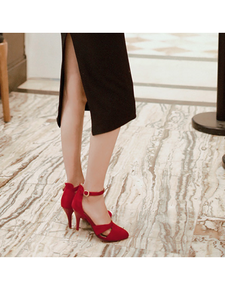 Escarpins rouges aspect nubuck à talons en petite pointure pour femme. Le bout des escarpins est légèrement pointu et original. Idéal pour le Printemps et faciles à assortir.