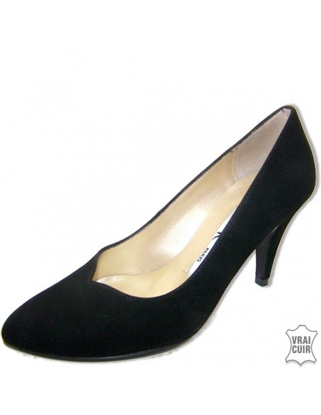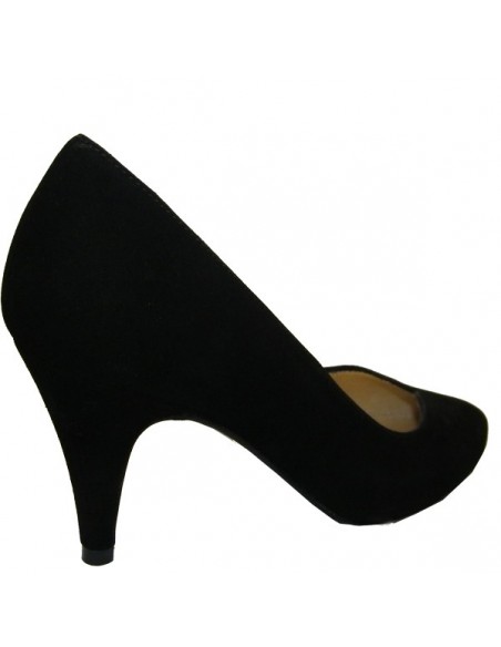 Queste décolleté nere con estremità leggermente appuntite sono in vero nabuk. La tomaia della scarpa descrive una V per uno stile molto glamour. Le décolleté hanno un'altezza del tacco ideale di 8 cm. Questo modello è un classico per tutti i giorni o per un'occasione, sono molto comodi e di buona qualità in pelle, realizzati in Spagna.