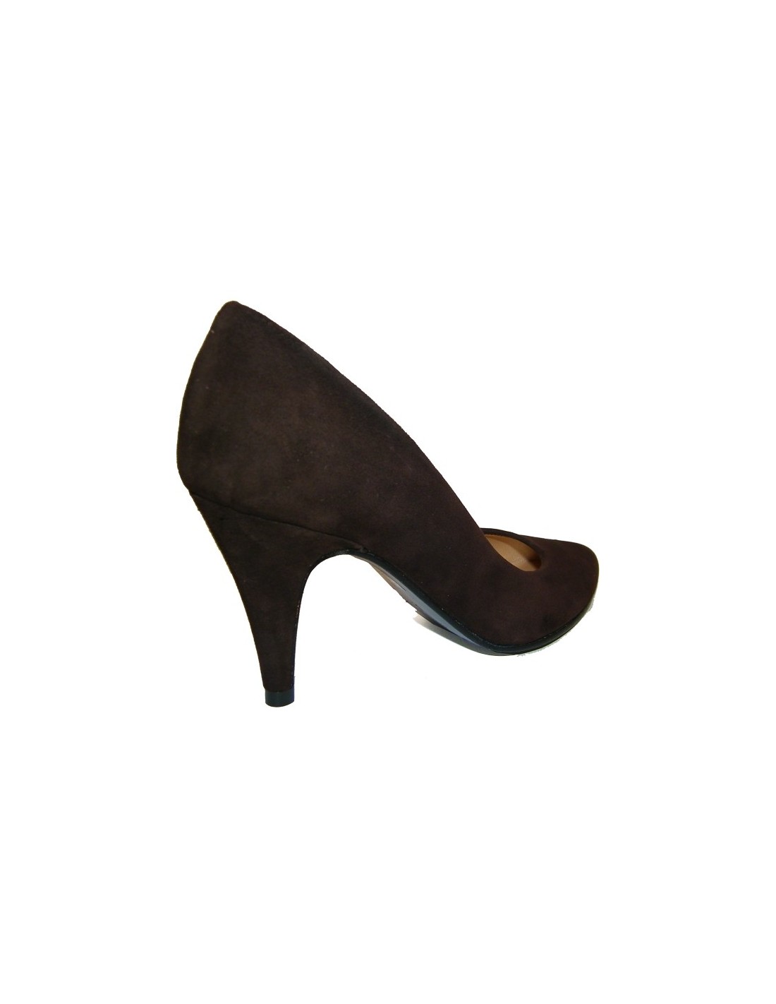 Estos zapatos de salón marrones con extremos ligeramente puntiagudos son de nobuk auténtico. Tienen una altura de tacón de 8 cm. Este modelo es muy cómodo y de piel de buena calidad, fabricado en España.