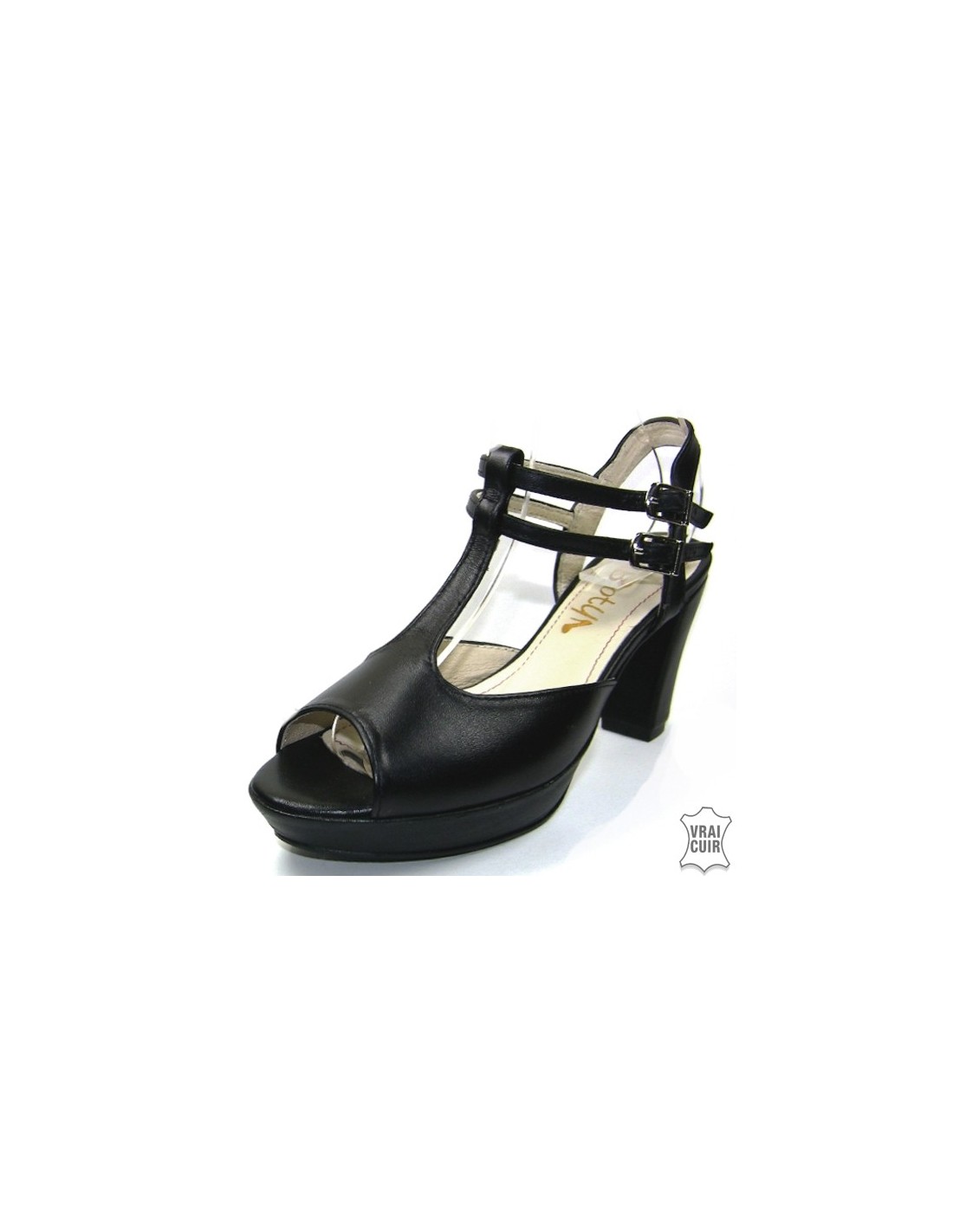 Ces sandales noires en cuir sont un modèle unique, dessiné et étudié par nos soins et entièrement fabriqué à la main en Pologne avec un cuir Italien. Elles sont conçues avec une hauteur de talon idéale de 7,5 centimètres ainsi qu'une plateforme,  pour diminuer la sensation de hauteur et ainsi  amortir la courbe de la chaussure. Elles sont également dotées d'une demi-semelle en mousse intégrée pour la garantie d'un véritable confort pour vos petits pieds.