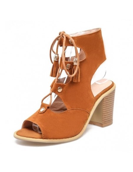 Ces Bottines peep to camel sont l'une des tendances de l'été 2016. Prenez un peu de hauteur tout en restant élégante et stylée. Ces lacets, ces petits boutons dorés et ses petits pompoms au bout des lacets ajoutent à ces chaussures une petite touche d'originalité, le tout dans un style bohème. Confortables et branchées, ces petites merveilles se portent aussi bien avec un jean skinny qu'une longue jupe.