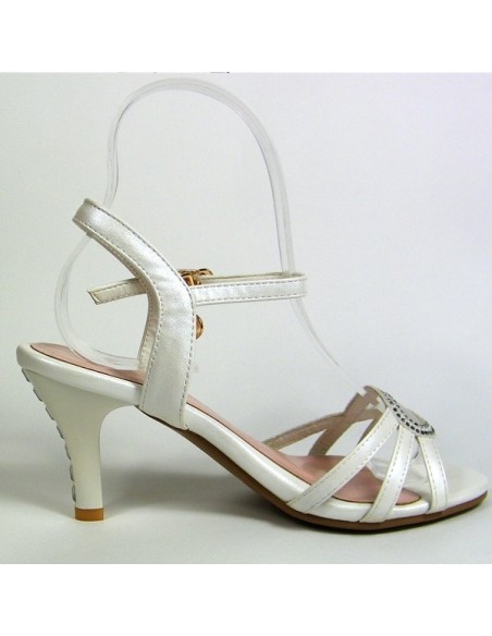 Des sandales blanches nacrées super élégantes ! Ces sandales ouvertes à  talons de 7.5 cm ont aspect cuir mat nacré, ces petites merveilles possèdent une demi-boucle de diamants sur le devant du pied et une bride de cheville dotée d'une perle. Ces sandales sont composées d'une ligne de petits strass rectangulaires au niveau du talon pour un effet original. Raffinées et chics, ces sandales sont à porter cet Été avec une jolie robe ou jupe ou à des occasions très spéciales comme un mariage.