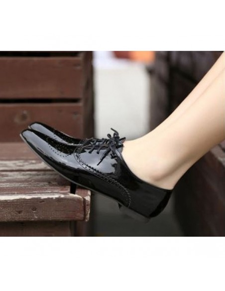 Derbis negros de charol en tallas pequeñas para mujer.