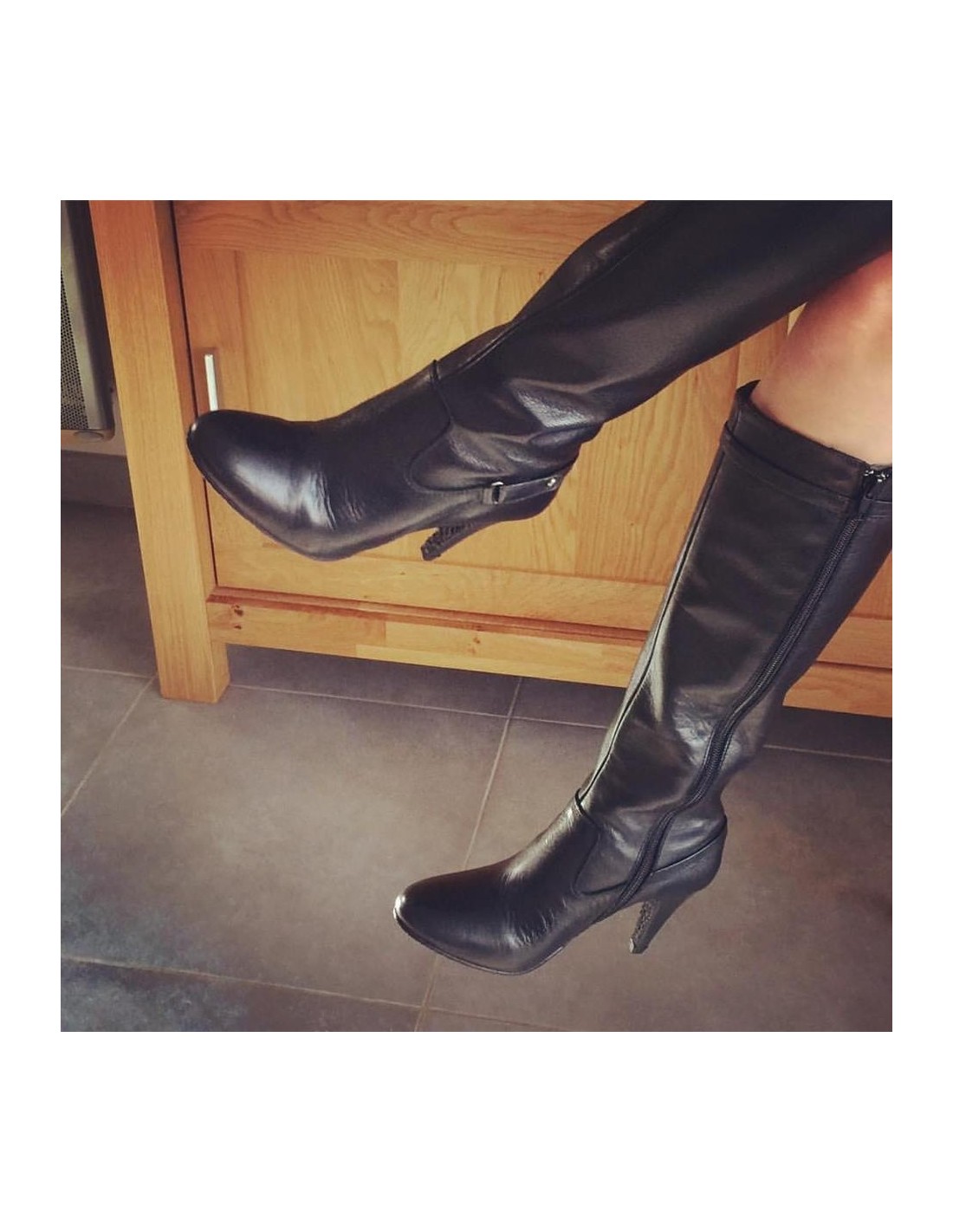 Estas botas negras tienen un tacón de 7,5 cm y una cremallera lateral interior hasta el fondo de la bota para facilitar su colocación .