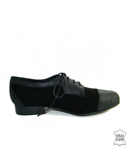 Eleganti e pratici, questi derby neri hanno un aspetto di pelle invecchiata perlata associata alla pelle scamosciata.