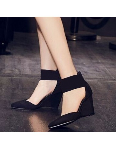 Ces escarpins à talons compensés noirs ont un bout pointu. Leur aspect nubuck et leur bout pointu leur apporte un côté chic .