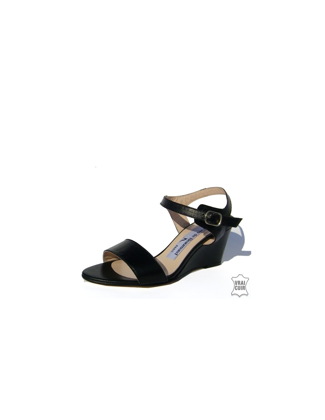 Sandales à talons compensés Mi-351 Noir Cuir