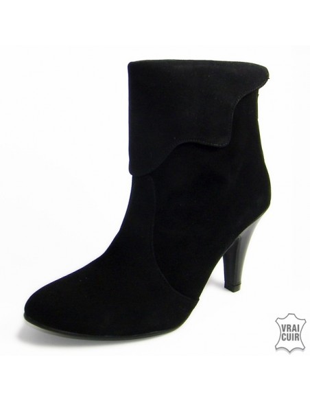 Des bottines noires à talons en nubuck pour petits pieds à partir de la pointure 32.