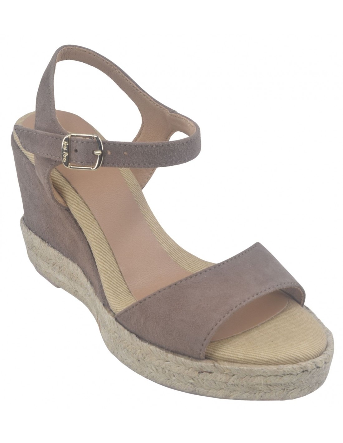 Sandali con zeppa, pelle scamosciata color tortora, Agnes-A, Toni Pons