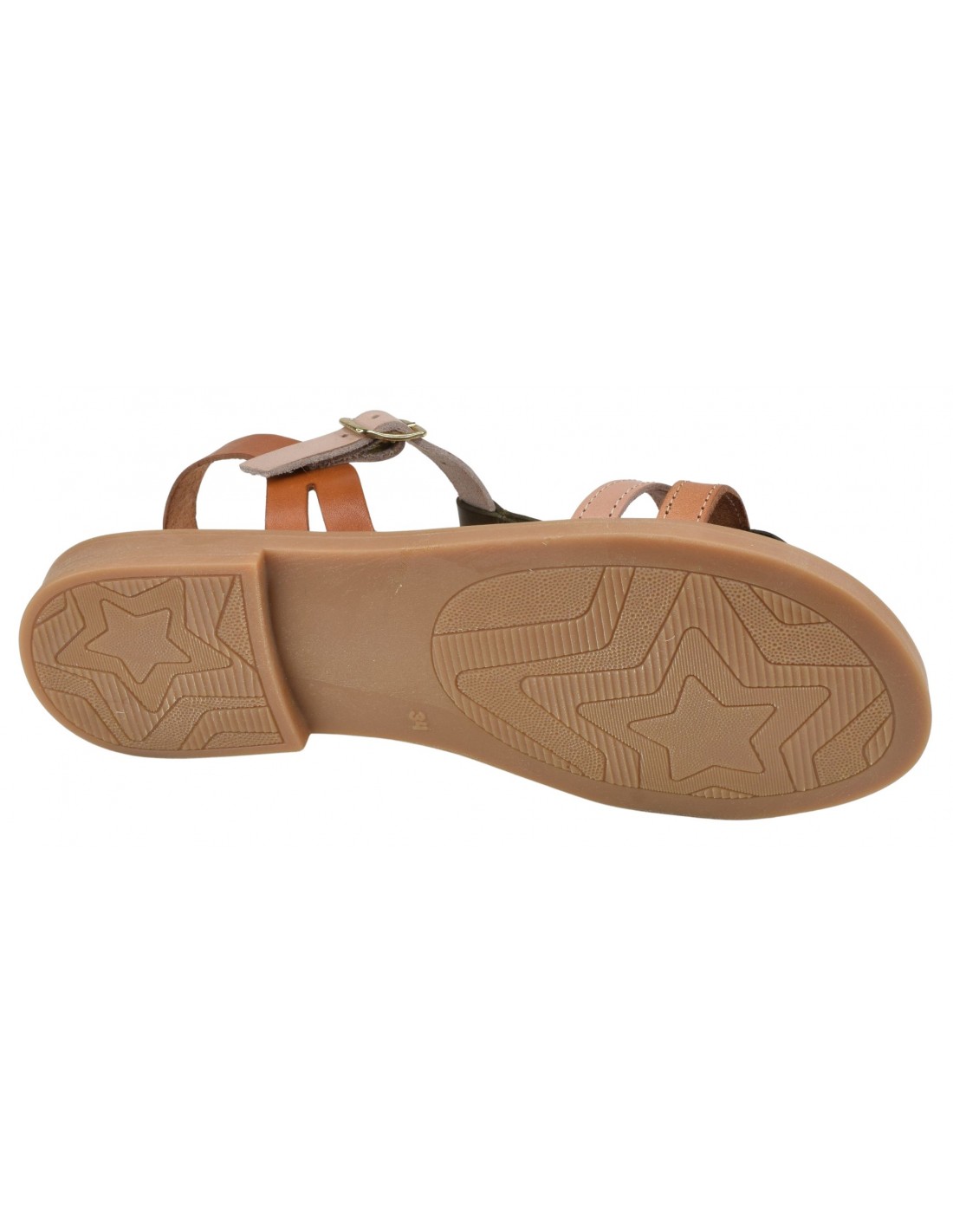Sandali piatti a piedi nudi, pelle tricolore, 17441, Carlita