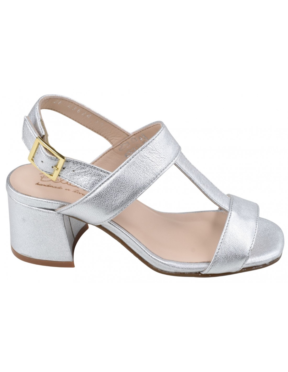 Sandali Lima Silver in luminosa pelle metallizzata, appositamente progettati per le taglie più piccole 33 e 34. Elegante supporto grazie al cinturino regolabile alla caviglia e all'ampia fascia sul collo del piede. Comodo tacco a blocco di 5,5 cm che offre stabilità e stile. Ideali per matrimoni, occasioni formali o eleganti outfit estivi. Suola in elastomero per maggiore flessibilità e aderenza.