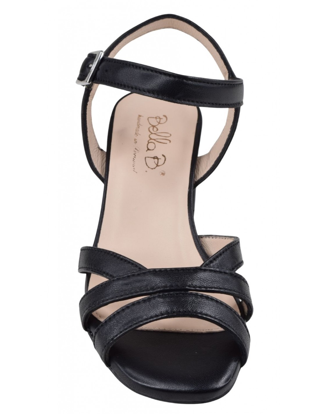 Sandali in pelle liscia nera, tacco 5,5 cm, Asterias, Bella B