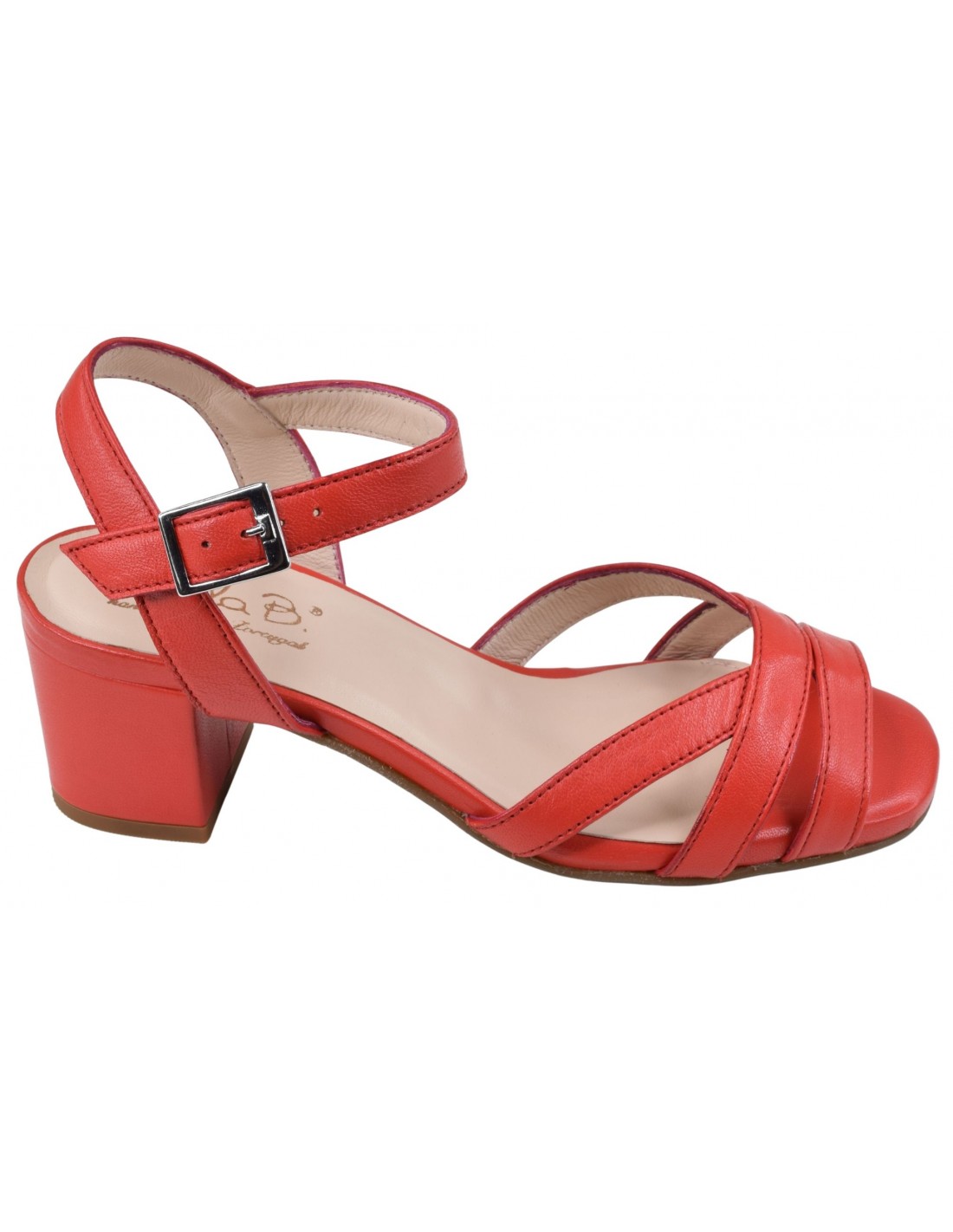 Sandali Asterias in pelle liscia rossa di Bella B, con tacco stabile di 5,5 cm. Un modello elegante e comodo, pensato appositamente per le donne che indossano numeri di scarpe più piccoli, dal 33 al 34.
