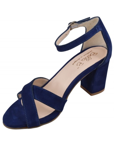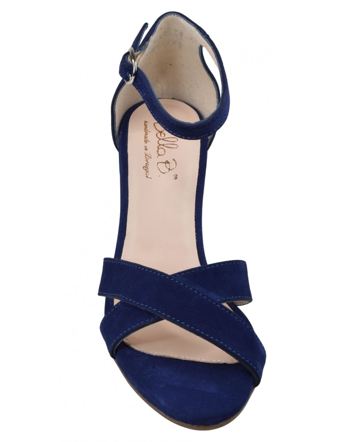Sandali Bless in camoscio blu navy di Bella B, con tacco stabile di 7 cm, realizzati in Portogallo. Soletta interna in pelle imbottita con 3 mm di gel e suola esterna in gomma flessibile per un comfort ottimale. Disponibili nelle taglie più piccole, dal 33 al 34.