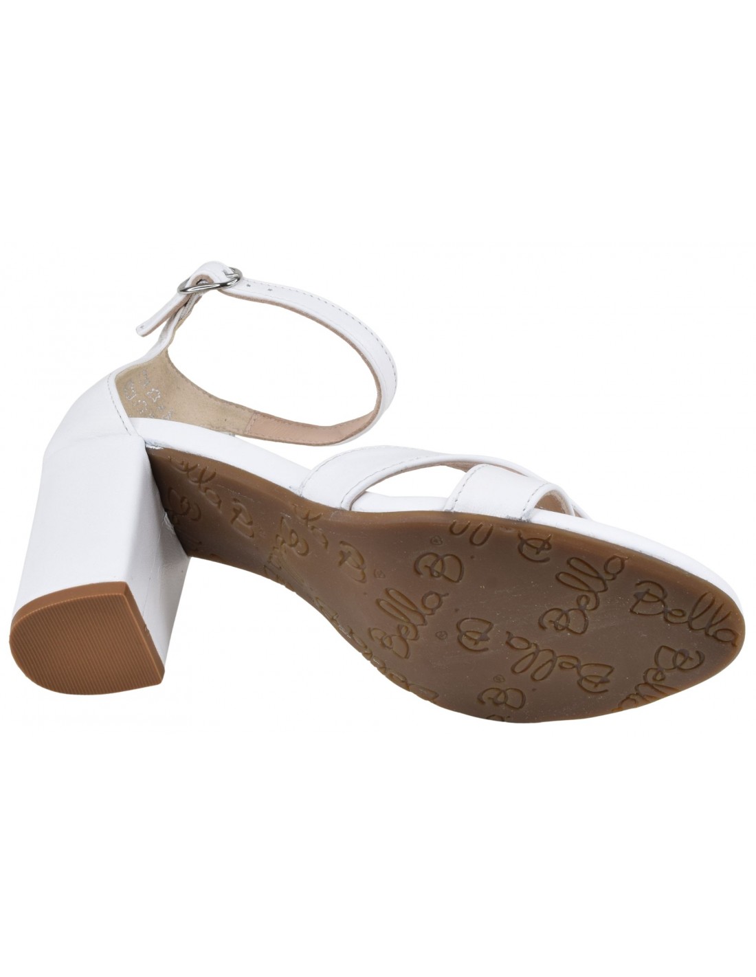 Sandales femme en cuir lisse blanc, modèle Bless par Bella B. Élégantes et intemporelles, elles sont montées sur un talon de 7 cm stable et confortable. Semelle intérieure en cuir matelassée avec 3 mm de gel pour un confort optimal. Fabrication portugaise, spécialement pensée pour les petites pointures.